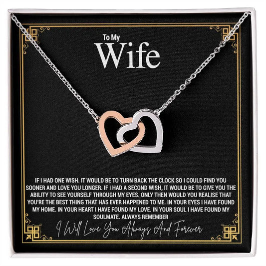 To My Wife...IF I HAD ONE WISH. IT WOULD BE TO TURN BACK THE CLOCK SO I COULD FIND YOU SOONER AND LOVE YOU LONGER IF I HAD A SECOND WISH, IT WOULD BE TO GIVE YOU THE ABILITY TO SEE YOURSELF THROUGH MY EYES.