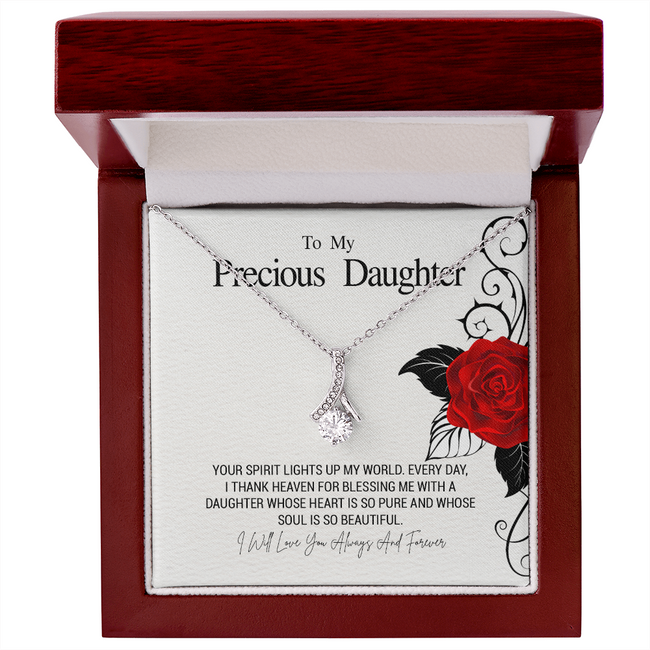 Imagine her reaction when she opens this stunning gift! The Alluring Beauty necklace features a petite ribbon shaped pendant that is sure to dazzle your special someone. Whether it's a birthday or anniversary, make sure to get her a gift she will love for years to come.